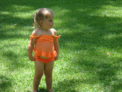 Cheney enjoyed pushing Ashtyn in the swing. She laughed at him....I think she thought his mohawk was FUNNY looking!!